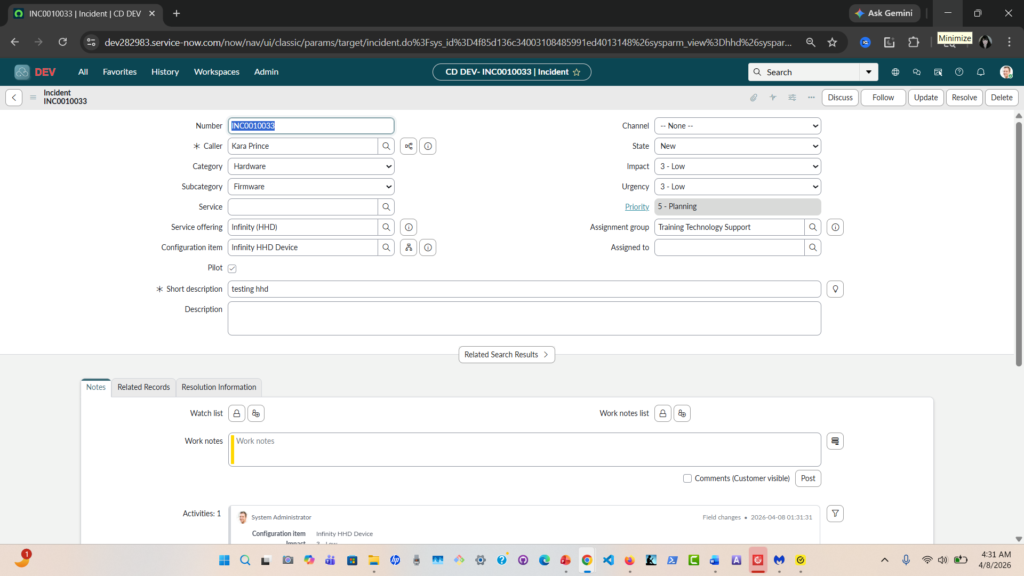 Create a new Table for HHDs: Holographic Handhelds (extends cmdb_ci_hardware)